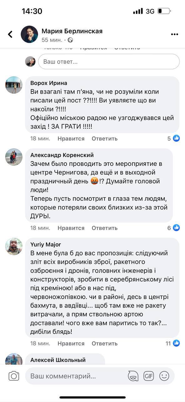 14:39 В комментариях под анонсом выставки дронов в драмтеатре Чернигова, которая, судя по всему, и была целью ракетного удара, поднялась волна хейта в адрес организаторов мероприятия.