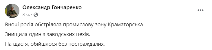 До этого вражеский удар ракетами также пришелся по админзданию и предприятию Краматорска.