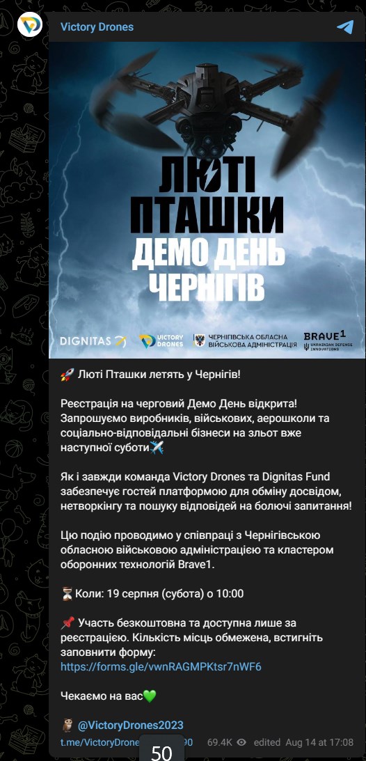 Анонс встречи по беспилотникам в Чернигове был опубликован еще 14 августа организацией Victory Drones, в которую входит известный волонтер Мария Берлинская (ее называли в числе кандидатов на пост нового министра обороны).