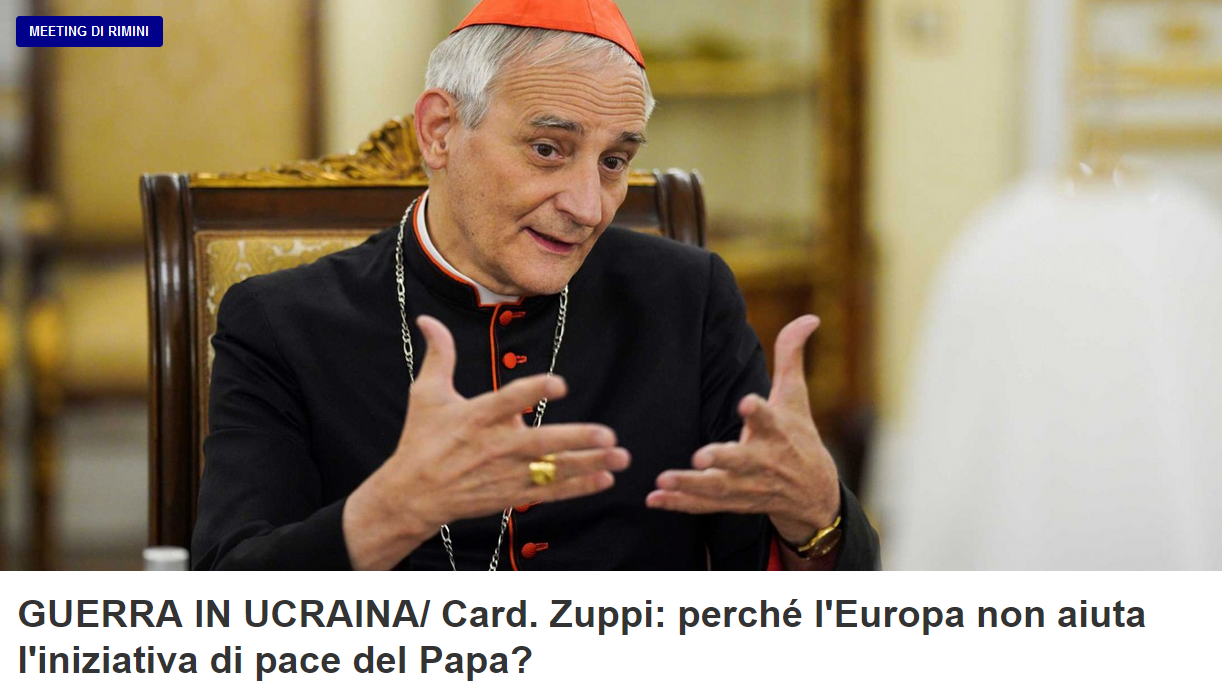 Посланник папы римского Франциска по урегулированию войны в Украине кардинал Маттео Дзуппи заявил, что Евросоюз "делает слишком мало" для решения конфликта.