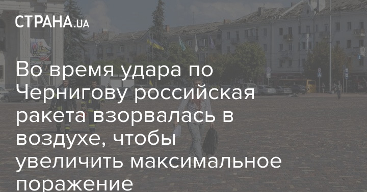 Российская ракета "Искандер-М" взорвалась в воздухе, чтобы увеличить максимальное поражение на открытой местности во время удара РФ по центру Чернигова 19 августа.
