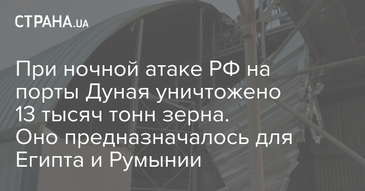 В результате ночной атаки "Шахедов" на порты Дуная было уничтожено 13 тысяч тонн зерна. Повреждения получили сразу несколько частных зерновых терминалов и складов, а также грузовая инфраструктура.