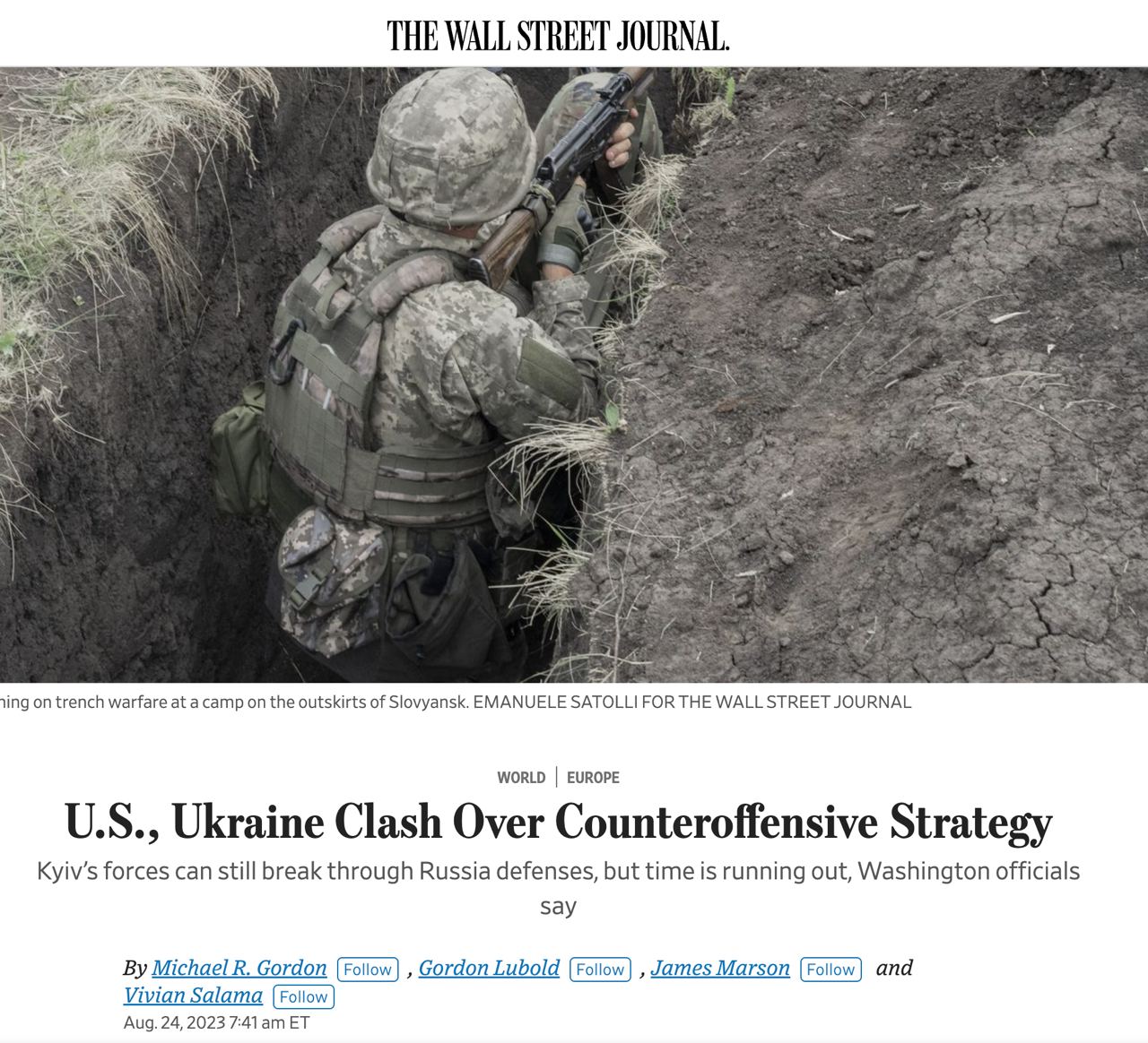 Однако, по данным WSJ, коррективы Украина в свою стратегию все же внесла и сконцентрировалась на Ореховском направлении, перейдя в оборону "в восточной части Запорожского фронта". Вероятно, имеется ввиду второе направление удара на юге на Времьевском выступе.