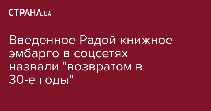 В частности, экс-спикер парламента, нардеп Владимир Литвин назвал закон о запрете ввоза в Украину отдельных книг - "возвратом читателя в 1930-е годы".
