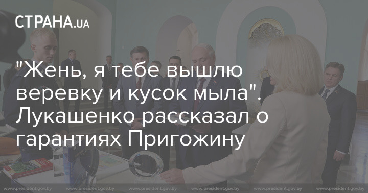 "Если прямо отвечать на этот вопрос: я и не должен обеспечивать безопасность Пригожина. Это во-первых. Во-вторых, никогда в таком ключе разговор и не шел. А в-третьих, запомните: по безопасности мы дважды подходили к этому. Первый раз, когда я ему звонил и шли переговоры, когда они маршем шли на Москву. Я ему говорю: "Жень, ты понимаешь, ты погубишь людей и сам погибнешь?" В пылу этот человек (только с фронта): "Черт с ним, погибну!" Я ему говорю: "Жень, я сейчас тебе вышлю веревку и кусок мыла." - "Не-не-не. Я так не хочу. Я героем погибну". Вот первый разговор шел. Второй раз, когда он приезжал ко мне с Димой Уткиным. Я категорически их обоих предупредил: "Ребята, смотрите", - заявил Лукашенко.