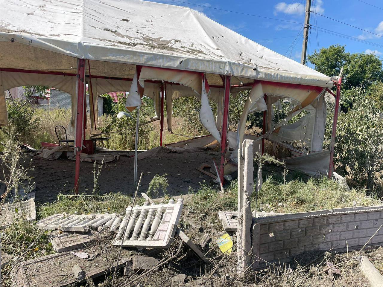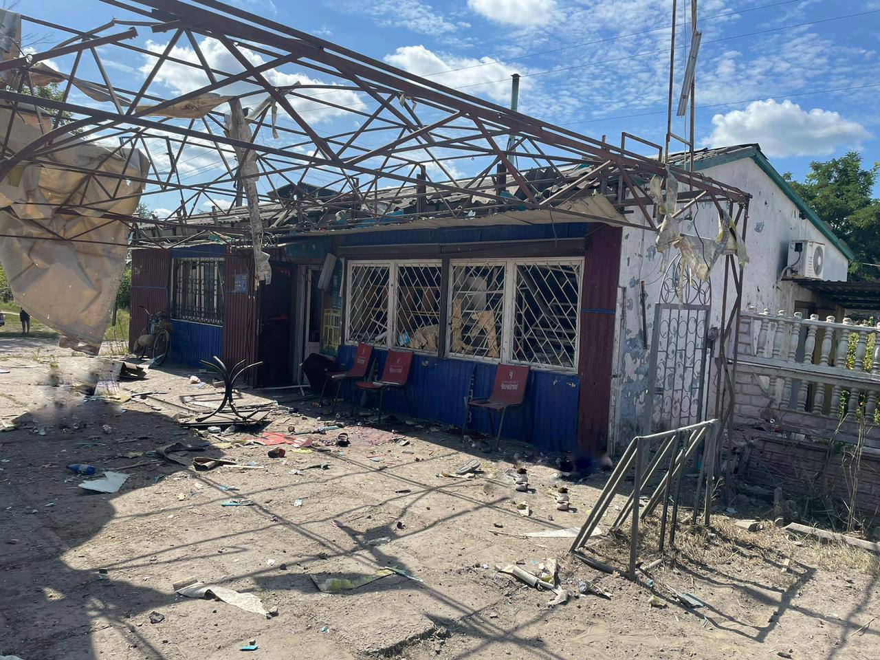 15:24 Фото кафе в селе Подолы Харьковской области, где вчера погибли два человека после обстрела из САУ "Пион".