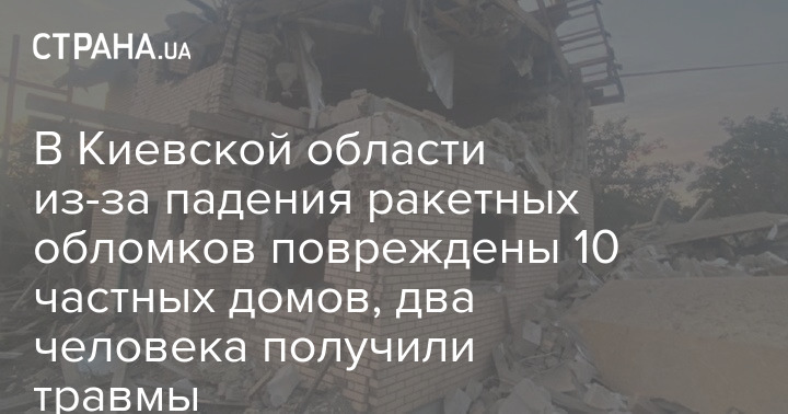 В Киевской области из-за падения ракетных обломков повреждены 10 частных домов, два человека получили травмы