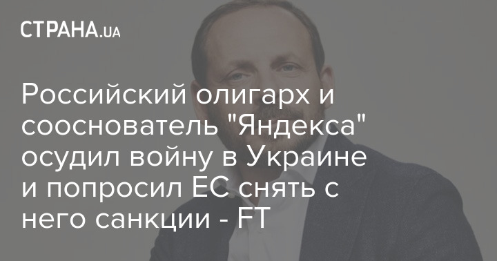 Российский олигарх и сооснователь "Яндекса" осудил войну в Украине и попросил ЕC снять с него санкции - FT