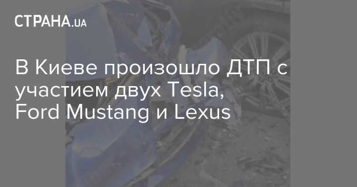 В Киеве произошло ДТП с участие сразу четырех элитных авто: двух Tesla, Ford Mustang и Lexus.