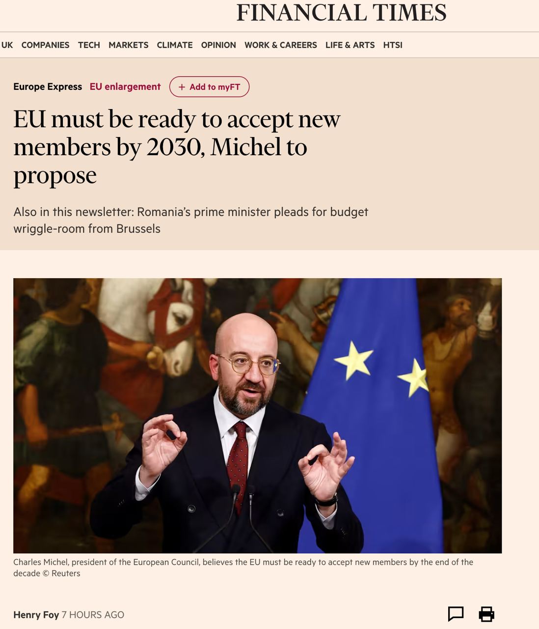 Об этом заявил глава Евросовета Шарль Мишель на открытии Международного форума в Словении. Его слова приводит газета Financial Times.