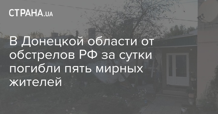 В Донецкой области от обстрелов РФ за сутки погибли пять мирных жителей
