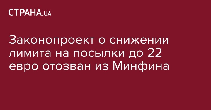 В четверг, 8 декабря проект закона, предлагавшего ввести налоги на все почтовые посылки дороже 22 евро, отозван. Ассоциация предприятий информационных технологий Украины (АПИТУ) отозвала документ из Министерства финансов Украины.