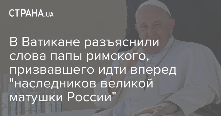 Ватикан опубликовал разъяснение слов папы римского Франциска, который призвал идти вперед "наследников великой матушки России", чем вызвал резкую критику в Украине.