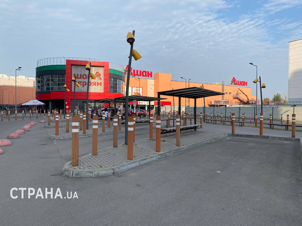 10.51 Новые фото прилета обломков ракеты в Ашан в Дарницком районе Киева.