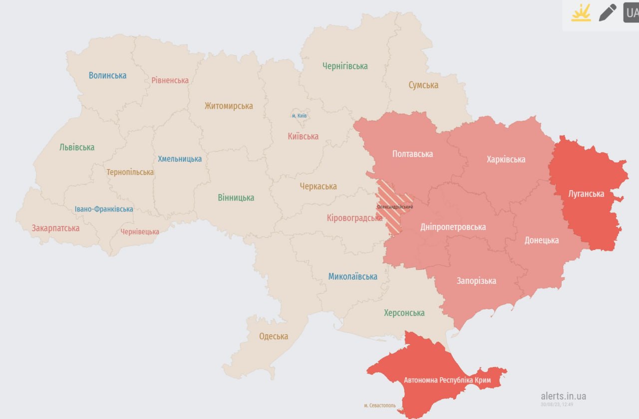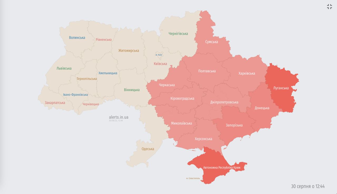 12.44 Воздушные силы призывают спуститься в укрытия жителей областей, где объявлена тревога.