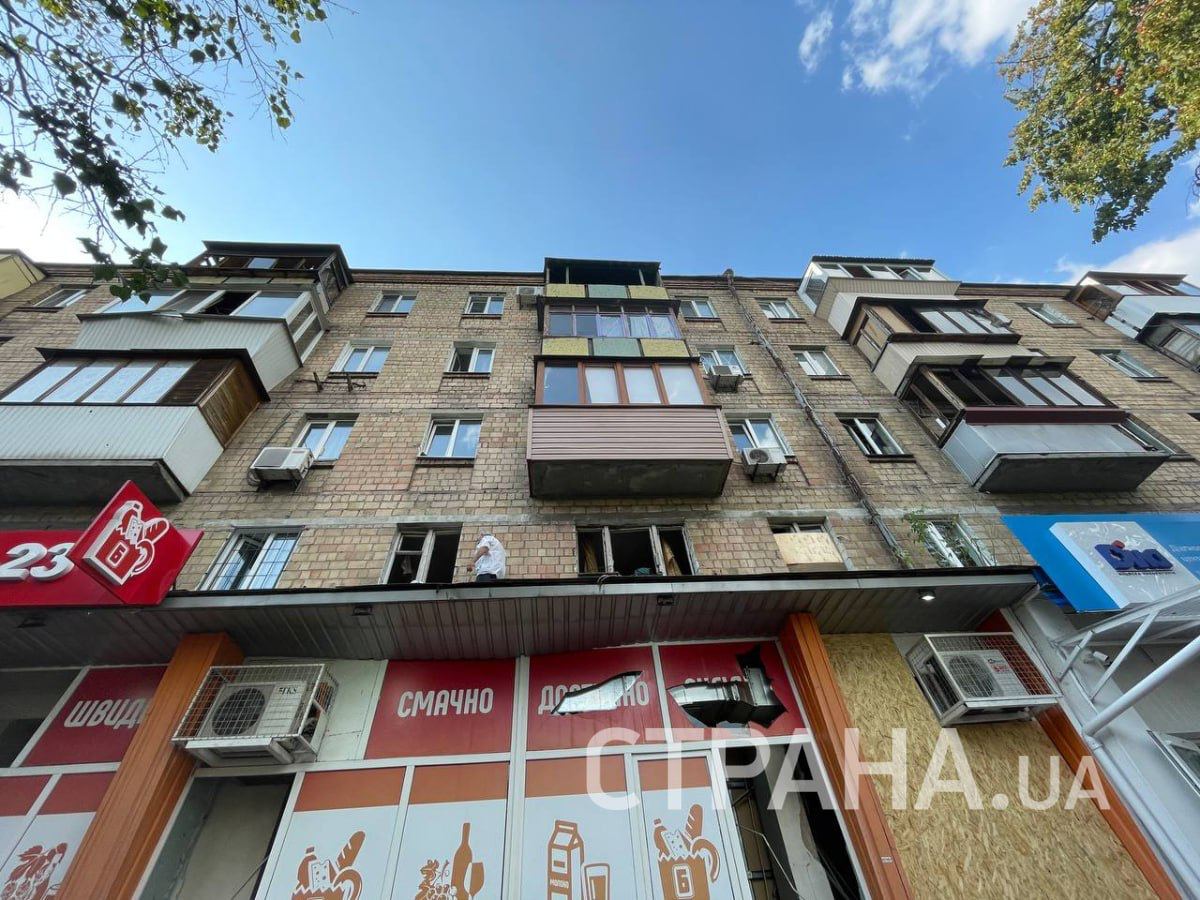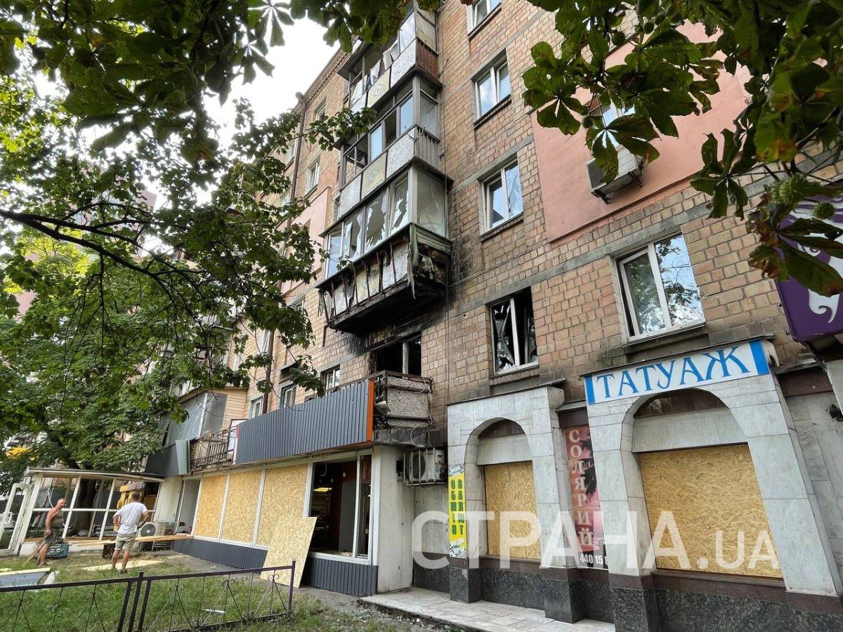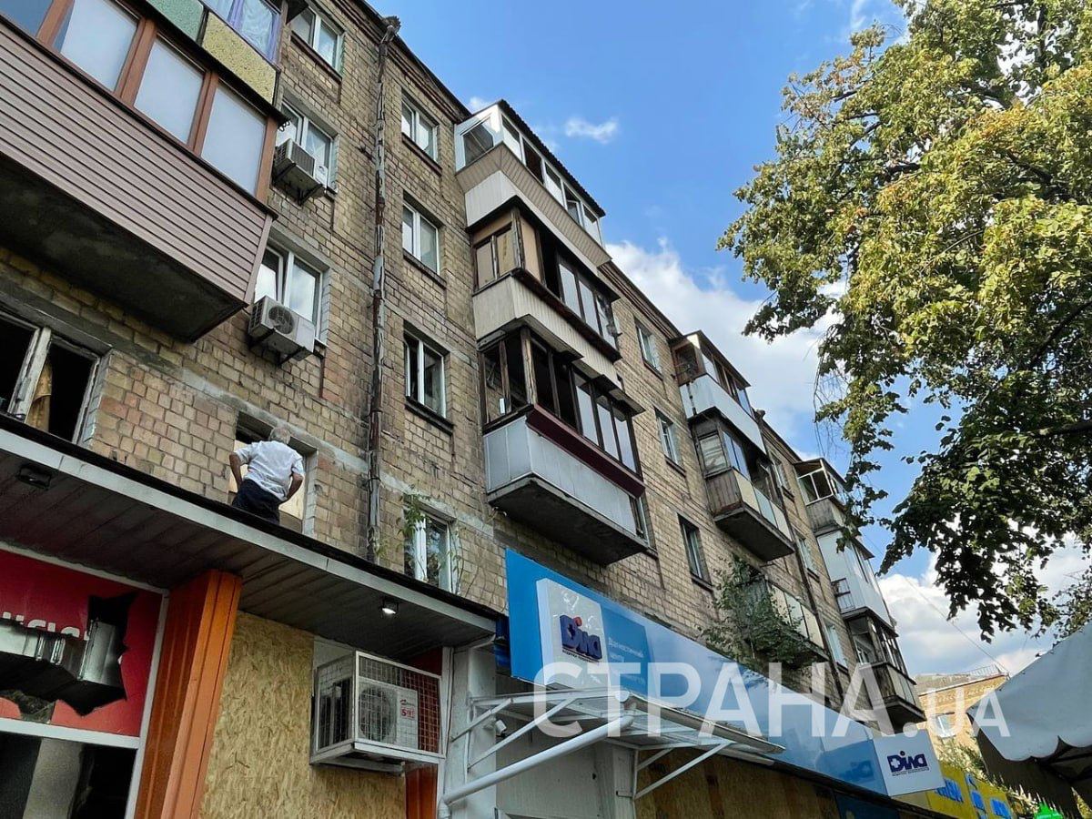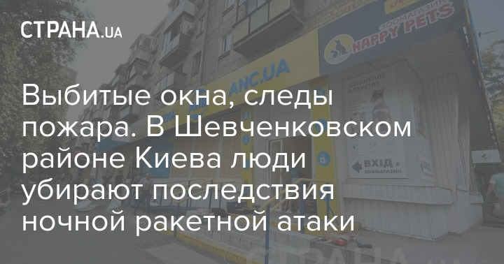 Выбитые окна, следы пожара. В Шевченковском районе Киева люди убирают последствия ночной ракетной атаки