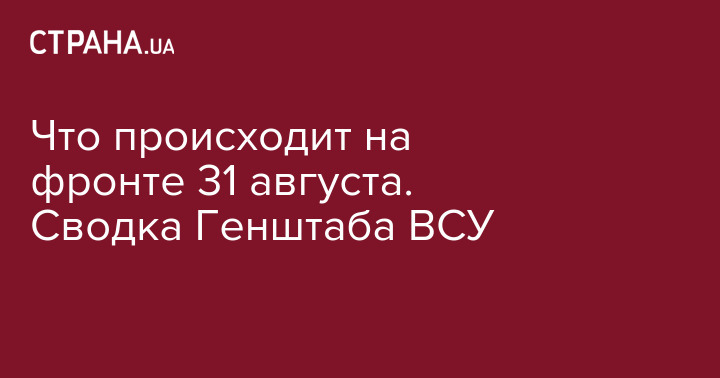 Что происходит на фронте 31 августа. Сводка Генштаба ВСУ