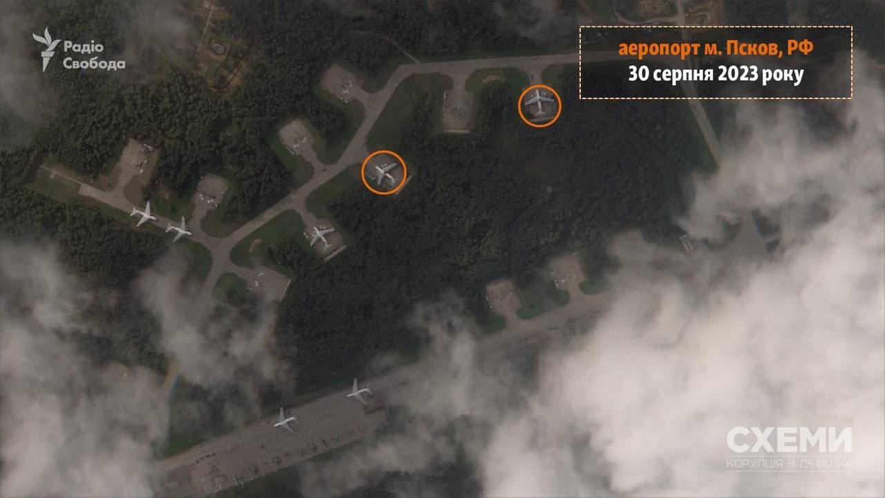 Появились спутниковые снимки, которые указывают на вероятное повреждение двух самолетов Ил-76 во время вчерашней атаки дронов в российском Пскове.