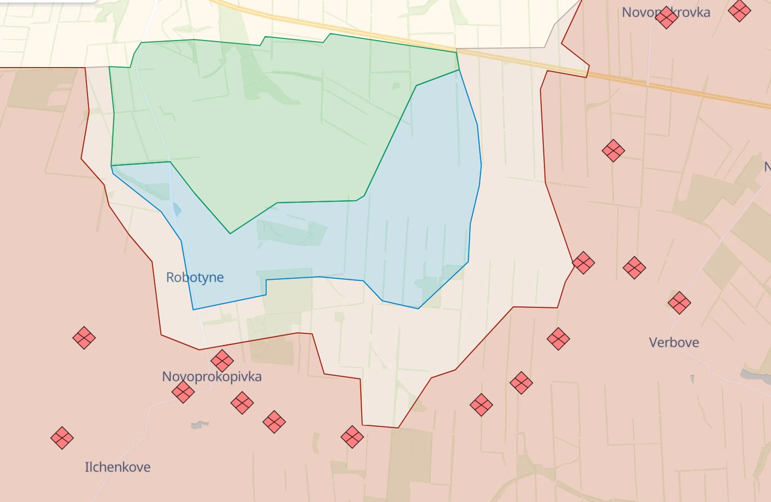 На Ореховском участке Запорожского фронта в последнее время все чаще упоминается село Вербовое к востоку от Работино. По данным Генштаба ВСУ, в его направлении есть продвижение. О продвижении украинских войск на 1 километр к Вербовому сообщают и российские военные паблики, заявляя, что бои идут недалеко от окраин села и публикуя их видео.