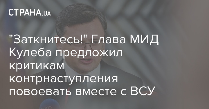 "Критика медленного темпа контрнаступления приравнивается к плевку в лицо украинского солдата... Я рекомендую всем критикам заткнуться, приехать в Украину и попробовать самим освободить один квадратный сантиметр", — сказал министр иностранных дел.