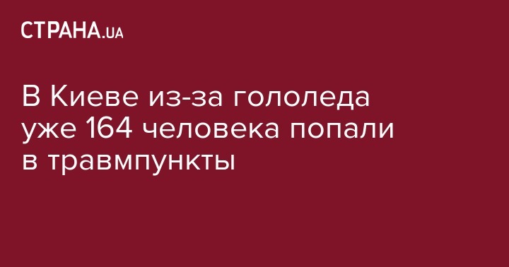 В Киеве из-за скользких дорог уже 164 человека попали в травмпункты, у 39 из них травмы оказались серьезными и они были госпитализированы. Об этом сообщил начальник управления по чрезвычайным ситуациям КГГА Роман Ткачук, передает канал "112 Украина".