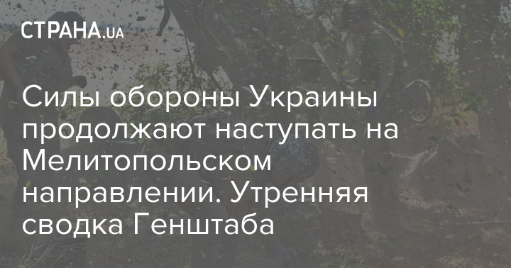 Силы обороны Украины продолжают вести наступательную операцию на Мелитопольском направлении, закрепляются на достигнутых рубежах, осуществляют меры контрбатарейной борьбы.