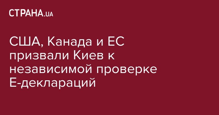 Посольство США и Канады, а также представительство Европейского Союза призвали Украину провести независимую и достоверную проверку электронных деклараций чиновников. Об этом идет речь в их совместном заявлении по случаю Международного дня противодействия коррупции, размещенном на странице представительства ЕС в социальной сети Facebook.