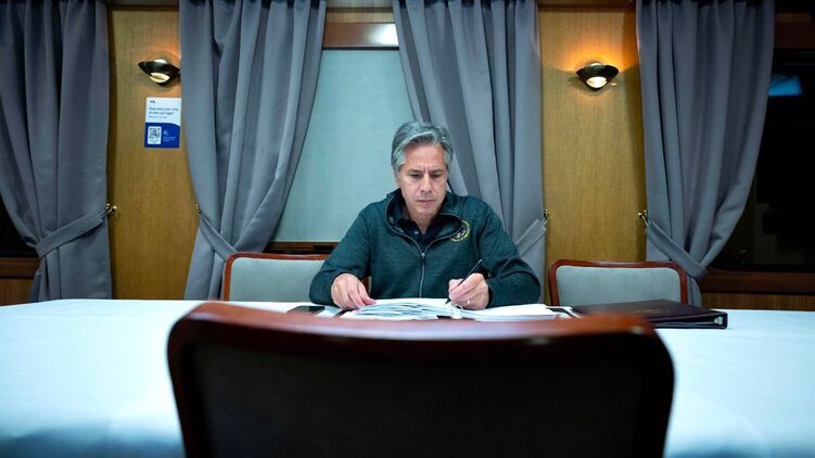 Американский телеканал CNN подтвердил приезд главы Госдепа США Энтони Блинкена в Киев и опубликовал фотографию госсекретаря в поезде "Укрзализныци".