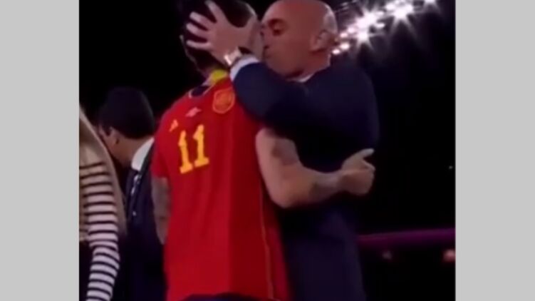 Луис Рубиалес во время церемонии награждения на женском ЧМ, где испанки одержали победу, на эмоциях поцеловал капитана команды Дженнифер Эрмосо.