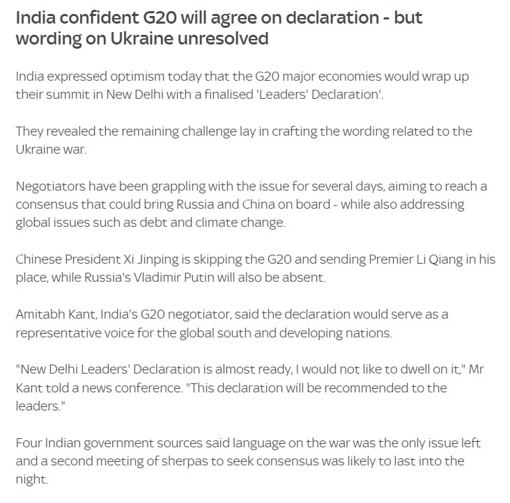 5. Лидеры G20 призвали к полному осуществлению зерновой сделки для обеспечения поставок продовольствия и удобрений как из Украины, так и из России.