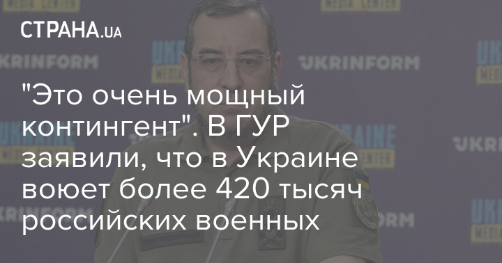 Замначальника ГУР Вадим Скибицкий заявил, что в Украине воюет более 420 тысяч российских военных. Это "очень мощный контингент", который насчитывает большое количество танков, бронемашин, артиллерийских систем, систем залпового огня и ракетных систем.
