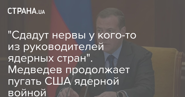 Зампред Совбеза РФ Дмитрий Медведев продолжает пугать США ядерной войной. По его словам, у одного из руководителей ядерных держав могут "сдать нервы" и он примет решение об использовании атомного оружия.