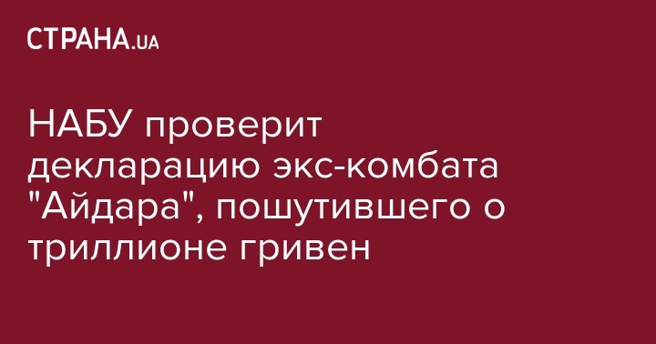 Материалы относительно электронной декларации экс-комбата батальона "Айдар", народного депутата Сергея Мельничука, который задекларировал 1 триллион гривень, направлены для проверки в национальное антикоррупционное бюро. Об этом на брифинге сообщила начальник отдела организации деятельности в сфере предотвращения и противодействия коррупции Генпрокуратуры Валентина Сеник, передает УНИАН.