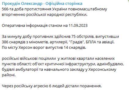 Во вторник, 12 сентября, в Украине идет 566-й день войны с Россией.