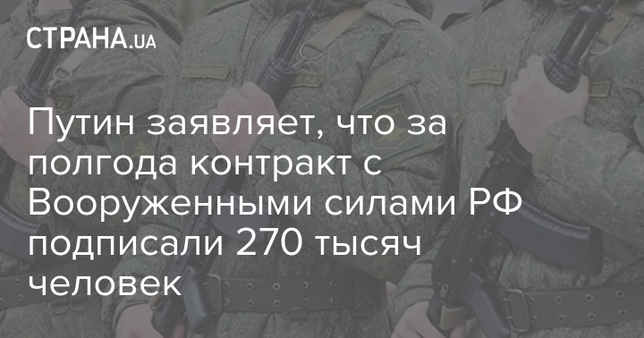 Путин заявляет, что за полгода контракт с Вооруженными силами РФ подписали 270 тысяч человек