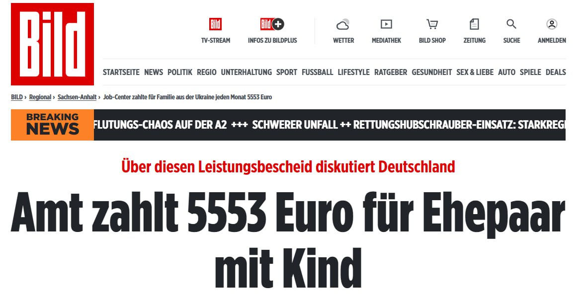 В Германии с ноября 2022 года по апрель 2023 года паре из Украины и их трехлетнему ребенку ежемесячно платили 5553 евро.