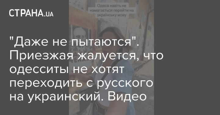 "Одесса меня немного разочаровала. <...> Одесса вообще не переходит на украиский язык. Вот вообще не переходит. <...> Я верю, что в Одессе много патриотов, но что ещё вам нужно, чтобы вы поняли, что говорить по-русски нельзя?" - говорит приезжая.