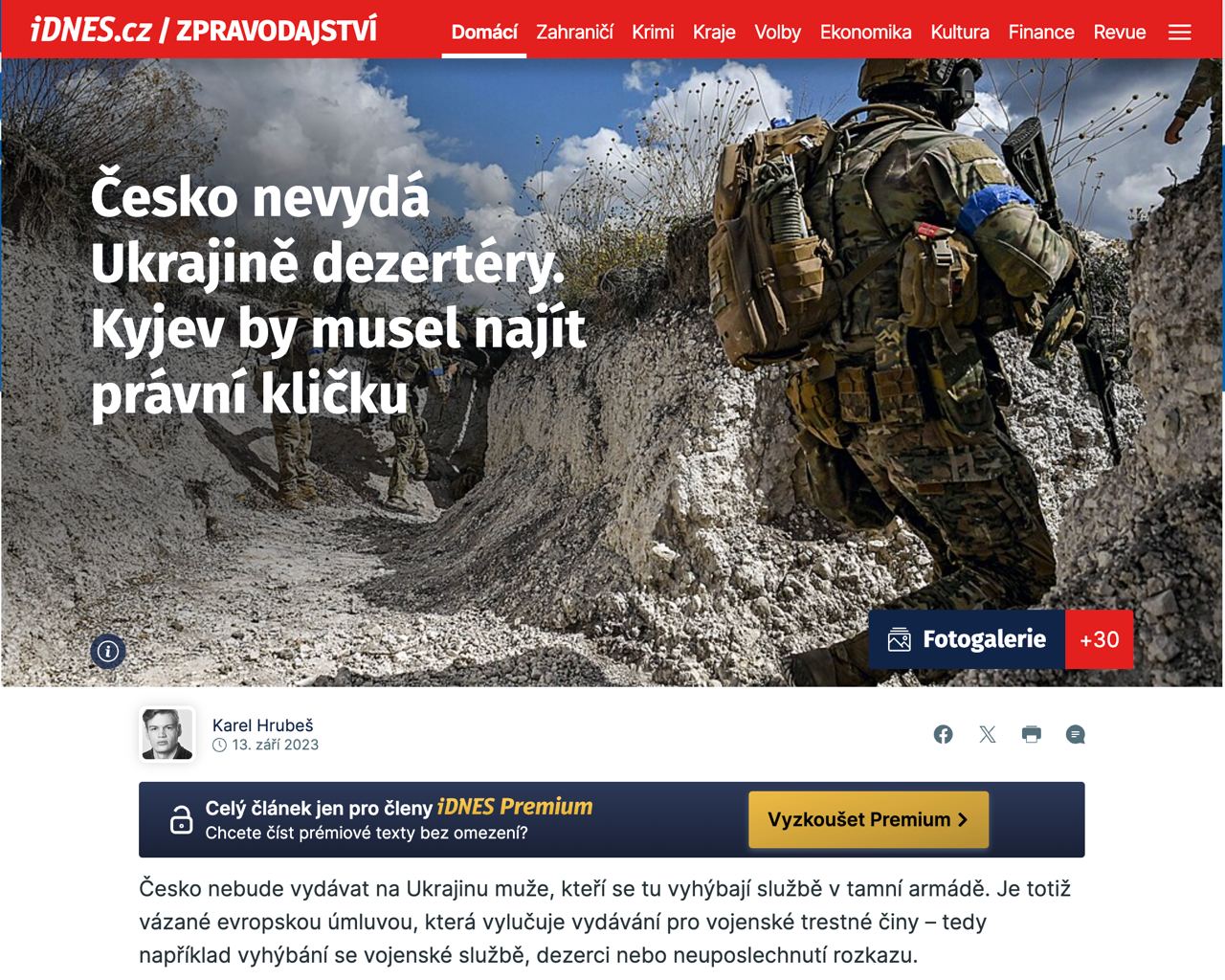 Чехия не будет экстрадировать в Украину уклонистов в соответствии с европейской конвенцией, которая исключает выдачу за военные преступления – уклонение от военной службы, дезертирство, неподчинение приказу.