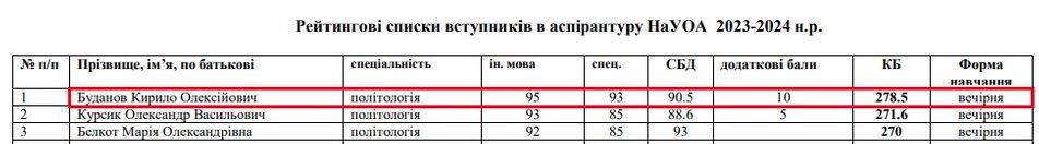 Глава Главного управления разведки (ГУР) Минобороны Кирилл Буданов, судя по всему, намерен писать кандидатскую диссертацию по политологии. Он поступает в аспирантуру ровенского университета "Острожская академия" по специальности "Политология".