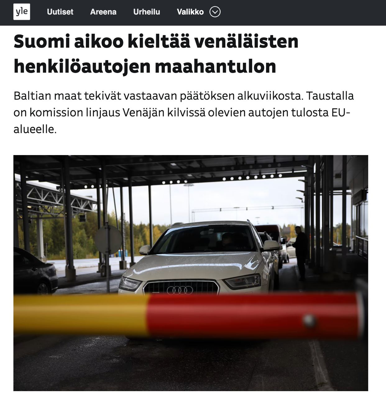 Финляндия запретит въезд автомобилей на российских номерах - вслед за Литвой, Эстонией и Латвией.