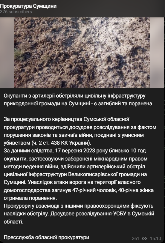 16:00 Сегодня утром войска РФ обстреляли Великописаревскую громаду в Сумской области. Погиб 47-летний мужчина, 40-летняя женщина получила ранения.