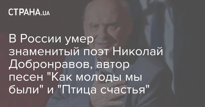 В России умер знаменитый поэт Николай Добронравов, автор песен "Как молоды мы были" и "Птица счастья"