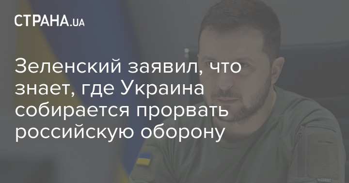 Президент Владимир Зеленский заявил, что знает, где Украина собирается прорвать российскую оборону.