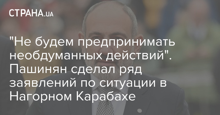 "Армения не участвует в военных действиях, и хочу еще раз отметить, что у Республики Армении нет армии в Нагорном Карабахе. В настоящее время мы не будем предпринимать никаких необдуманных действий", — заявил Пашинян.