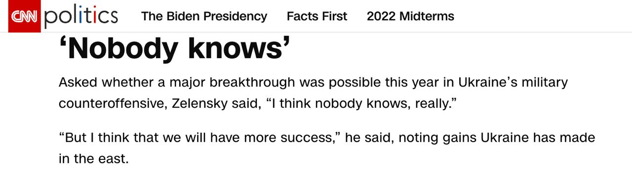 Президент Украины Владимир Зеленский сказал, что никто не знает, удастся ли Украине совершить крупный прорыв на фронте до конца этого года.