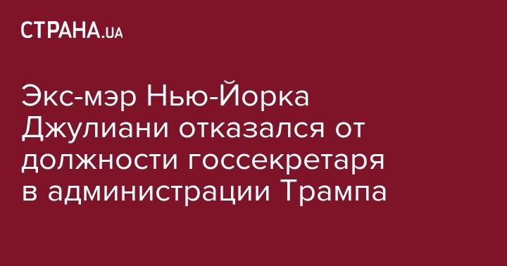 Экс-мэр Нью-Йорка Джулиани отказался от должности госсекретаря в администрации Трампа