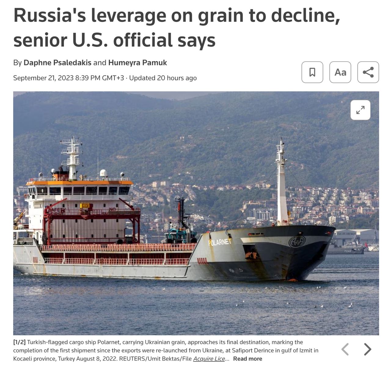 РФ не контролирует проход судов по украинскому коридору и ее влияние на экспорт по Черному морю снизится - США