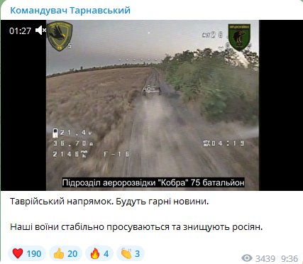 Командующий группировкой "Таврия" Александр Тарнавский сегодня утром пообещал "хорошие новости" о Запорожском направлении.