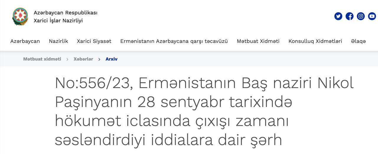 Данное обращение было ответом на заявление премьер-министра Армении, в котором он заявил, что в ближайшие дни армян в Нагорном Карабахе не останется. При этом Пашинян назвал происходящее "этнической чисткой".