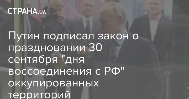 Президент РФ Владимир Путин подписал закон об установлении 30 сентября "дня воссоединения" "Донецкой и Луганской народных республик", а также Запорожской и Херсонской областей с Россией.
